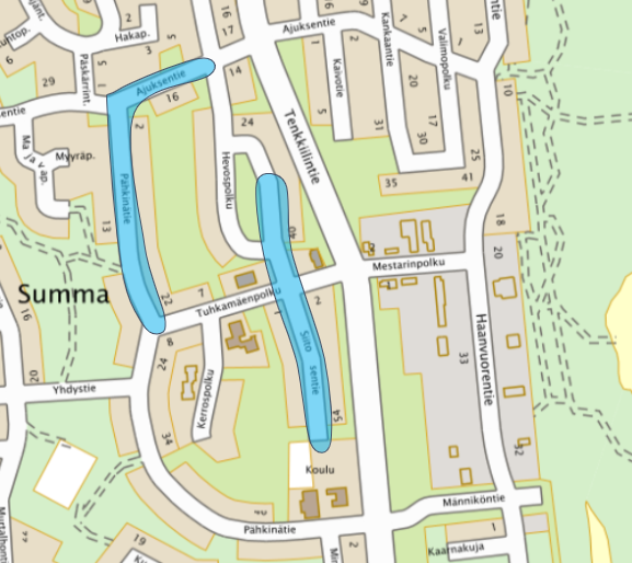 Uudessa-Summassa saneerataan yhteishankkeena kaupungin kanssa Pähkinätien pohjoisosa, Ajuksentie välillä Pähkinätie-Hevospolku ja Siitosentien eteläosa.